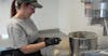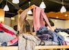 A customer attends and holds up a sweater at the Ball State Fashion Industry Studies Club Pop-up Shop ...