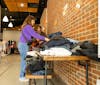 A customer attends the Ball State Fashion Industry Studies Club pop-up shop Oct. 23 at the Village Promenade ...