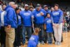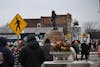 Attendees of Muncie Mission's Walk a Mile in My Shoes event rest at the finish of the walk Feb. 21 in ...