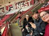 Faith Graves, Dillon Rosenlieb and Sam Kalvaitis pose for a selfie during a Ball State men's basketball ...