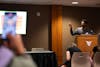 Ball State student Barry Ramage discusses with his audience his experience with social studies teaching ...