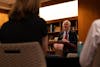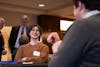 Ball State Professor of Classics Christine Shea talks to another attendee of the Student History Conference ...