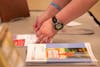 Ball State student Rebecca Wacker sets up the tables outside of the Student History Conference Feb. ...