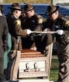 Officers honoring Cpl Blake Reynolds with the folding of colors Nov. 22 at Jones Cemetery. Kyle Ingermann, ...