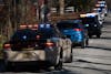 The funeral procession for Officer Blake Reynolds passing by on its way to Jones Cemetery Nov. 22 in ...