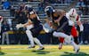 Ball State player tackles Toledo during the second half of the game Nov. 22 at Glass Bowl Stadium. Isabella ...