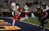 Sophomore wide reciever Isaiah Thacker runs the ball into the end zone for Ball States first touch down ...