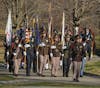 Honor Guard and Riflemen march during funeral proceedings for Cpl. Blake Reynolds Nov. 22 at Jones Cemetery. ...