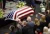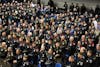 Attendees of Corporal Blake Reynolds funeral listen to the family's eulogy Nov. 22 at Delta High School. ...