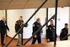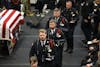 Police Officers wait to pay their respects to Corporal Blake Reynolds at his funeral service Nov. 22 ...