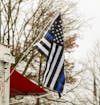Delaware County police officer adds a carnation to his uniform in respect to Corporal Blake Reynolds ...