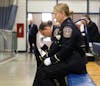 Members of the Marion County Honor Guard Andreas Escalante, left, and Nick Jones rehearsing the folding ...