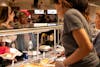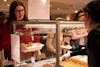 Ball State student talks with University Dining employee while the wait for a food item that was being ...