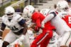 Redshirt linebacker Alfred Chea tackles Akron player Oct. 18 at Scheumann Stadium. Chea previously played ...