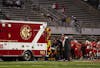 Akron player gets injured during the game and taken away in an ambulance Oct. 18 at Scheumann Stadium. ...
