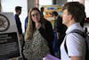 Ball State student converses with a representative from the Indiana Broadcaster's association at the ...