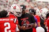 Ball State coach talks and coaches players on the sideline during the game Oct. 18 at Scheumann Stadium. ...