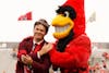 Homecoming game spectator cheers during the game Oct. 18 at Scheumann Stadium on the lawn. Isabella ...