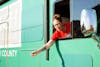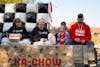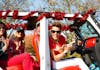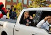 Ball State Homecoming Parade participants ride in the parade while smiling for a photo Oct. 18 on Ball ...
