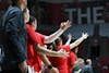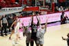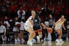 Players on the sideline celebrate teammates 3-pointer Nov. 20 at Worthen Arena. The team averaged 72.2 ...