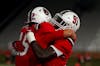 Ball State players celebrate together on the field after winning the game against Akron Oct. 18 at Scheumann ...