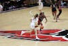 Freshman Giorgia Gorini moves the ball down the court Nov. 20 at Worthen Arena. Gorini scored 11 points ...