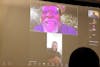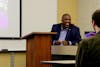 Dr. Gabriel Tait laughs during discussion with funk musician George Clinton Nov. 20 inside Ball Communications ...