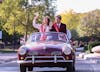 Homecoming Queen Caroline Emerick and Homecoming King Hunter Case wave to the crowds during the Homecoming ...