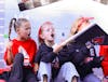 Cole All Star cheer members sit on the parade float cheering Oct. 18 Ball State campus. Anna Evilsizor, ...