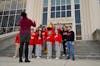 Ball State University Singers sign the National Anthem to kick off Chase Charlie Oct. 18 in Muncie, ...