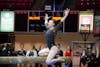Ball State gymnast celebrates and high-fives an attendee Feb. 15 in Worthen Arena. Isabella Kemper, ...