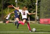 Freshman midfielder Izzy Ross kicks the ball Oct. 16 at Briner Sports Complex. Ross played at Blue Valley ...