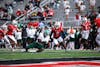 Redshirt sophomore TJ Horton tries for a touchdown at the BSU vs. Eastern Michigan game Nov. 15 at Scheumann ...