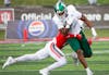 Freshman running back Jayvin Norman catches the ball Nov. 15 Scheumann Stadium. Norman had 4 rushing ...