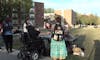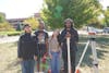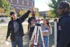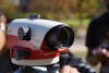 Construction management students use an optical level to measure the surrounding area and establish ...