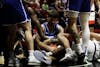 Ball State Men’s Basketball team and Buffalo fight for the ball on the court Feb. 11 at Worthen Arena. ...
