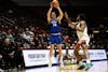 5-year Guard Angelo Brizzi shoots a three-pointer Feb. 11 at Worthen Arena. Brizzi made 3-6 three-pointers ...