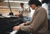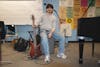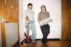 Ball State University students pose in the men's bathroom Feb. 4 in the Art and Journalism Building. ...