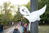 A little girl stands next to a scarecrow at "BOO-levard" Oct. 10 at Minnetrista. Mallory Hall, DN