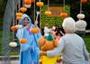 BOO-levard Bash attendee takes a photo of their kid in costume, Oct. 10 at Minnetrista Boulevard in ...