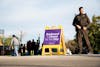 Law Enforcement officer guides attendees of the BOO-levard Bash towards points of interest for the event, ...