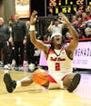 Junior guard Armoni Zeigler blocks mansfield player shot Nov. 7th at Worthen Arena. Chloe Bailey, DN ...