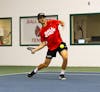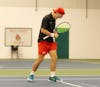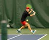 Junior tennis player Drew Hayward prepares to hit the ball to try to score a point Nov. 9 at the Northwest ...