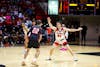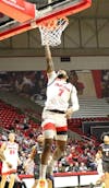 Junior guard Armoni Zeigler lays the ball up & makes the basket Nov. 7th at Worthen Arena. Chloe Baiey, ...
