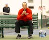 Ball State Head coach Gene Orlando sits and watches as players play thier match Nov. 9 at Northwest ...