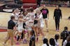 Ball State Women’s Basketball team rushes the court after beating Troy 86-87 Feb. 7at Worthen Arena. ...