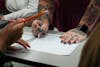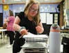 Samantha Ivy’s students turn in an assignment the class worked on together Oct. 30 at Muncie Central ...