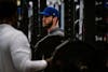 Zane Fakes assists Kenny Moore in the wight room Sept. 2022 at the Colts practice facility. Indianapolis ...