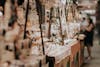Indoor festive weekend market. Social pop up event of entrepreneurs and makers selling their goods at ...