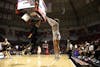Ball State freshman guard Aniss Tagayi drives into the paint Feb. 28 at Worthen Arena. Kaibre Taylor, ...